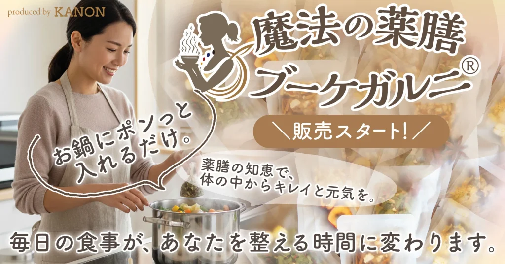 「魔法の薬膳ブーケガルニ」販売開始いたしました。スープや煮込み料理にポンと入れるだけで薬膳料理が完成する「厳選された生薬のパック」です。あなたのキッチンで、今日からはじめる薬膳習慣を。